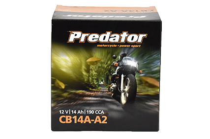 The Predator CB14A-A conventional flooded battery is designed to meet many orginal OEM specifications for both starting and amp hour capacities.  Heavy duty glass mat/PE composite separators improve vibration resistance and through-the-wall (TTP) intercell connectors minimise internal resistance for maximum power.  Quick remove vent caps and transparent casing make checking electrolyte levels easy and no fuss.